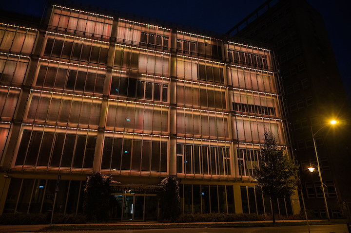 Budynek Instytutu Informatyki UMCS w Lublinie w złotych barwach