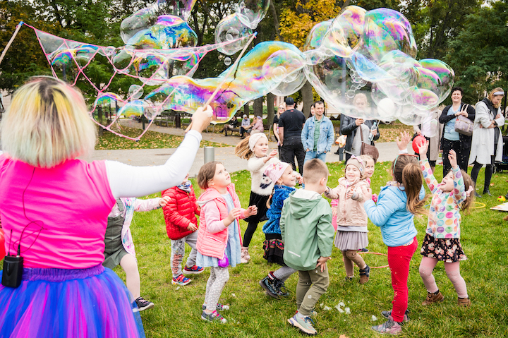 Miasteczko namiotowe ze stoiskami informacyjnymi fundacji, stowarzyszeń i instytutów