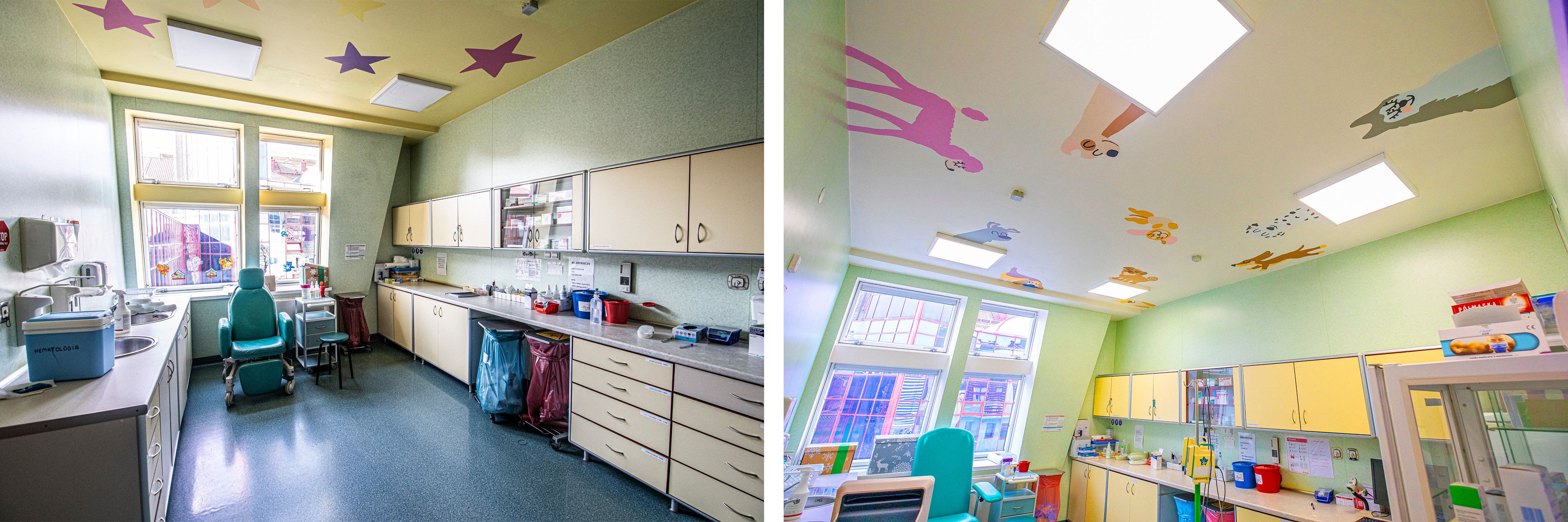 „Ten remont potrzebny był zarówno dzieciom, jak i personelowi. Bardzo fajnie jest pacjentom przebywać w otoczeniu zwierząt, leżeć “pod lemurem czy żyrafą”, patrzeć w sali zabiegowej na sufity, na których znajdują się kotki czy pieski. Dzieci same wybierały miejsca, gdzie znajdują się te wzory. To osładza im przykre momenty związane z koniecznością opuszczenia domu i pobytu na oddziale. Remont sprawił, że także nam milej jest pracować.” – lek. med. Katarzyna Machnik, Koordynator Oddziału Hematologii i Onkologii Dziecięcej w ZSM w Chorzowie.