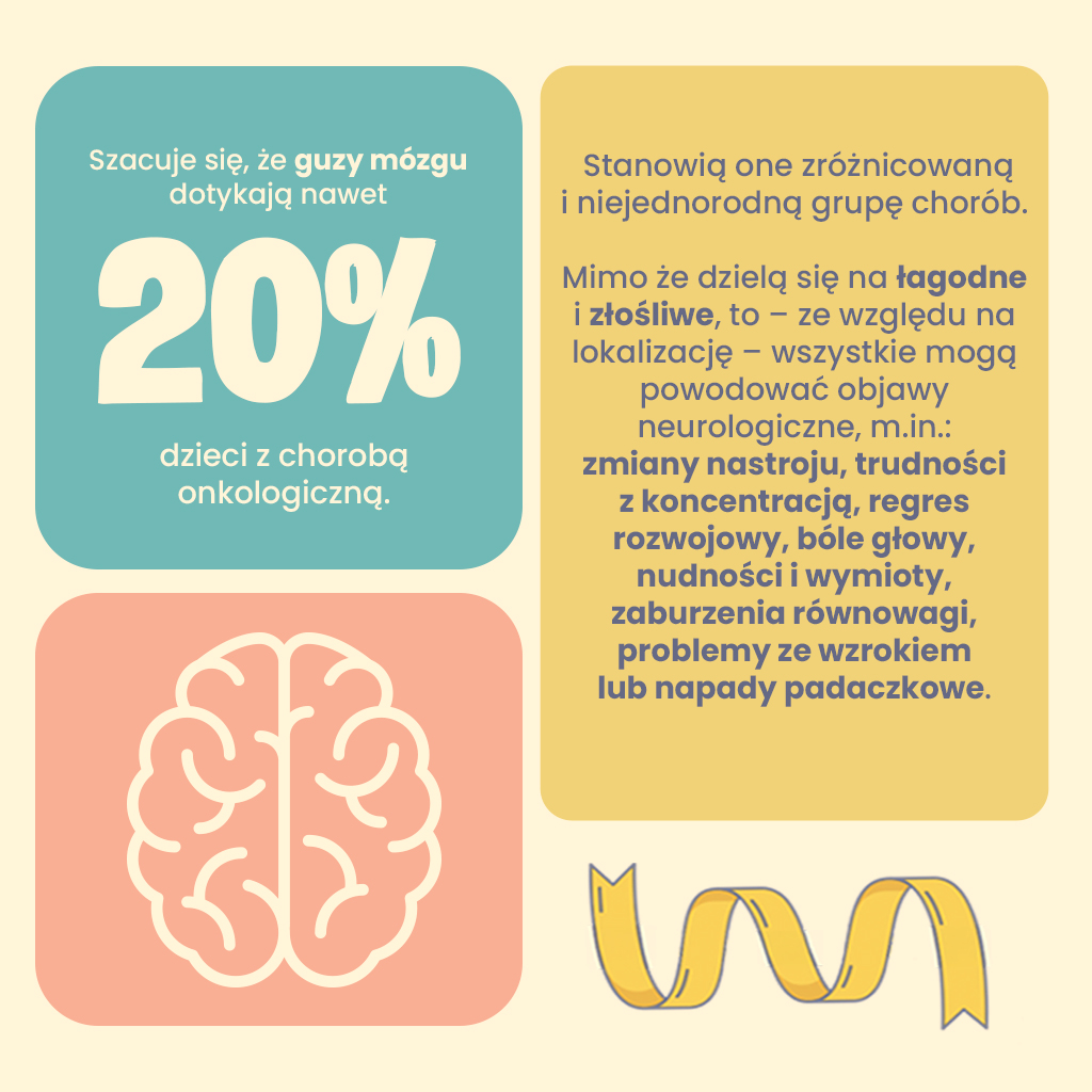 Guzy mózgu u dzieci stanowią zróżnicowaną i niejednorodną grupę chorób, które rozwijają się w obrębie ośrodkowego układu nerwowego, złożonego z mózgowia - móżdżku, pnia mózgu i mózgu oraz rdzenia kręgowego. W przeciwieństwie do nowotworów u dorosłych, guzy mózgu u dzieci często różnią się pod względem biologii, przebiegu oraz odpowiedzi na leczenie. Dzielimy je na: