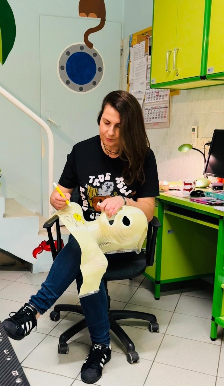 "Zatrudnienie pani Emilii dało możliwość przygotowania barwnych, wymarzonych przez dzieci unieruchomień. Obserwujemy obecnie sytuację, gdy nowo zgłaszające się dzieci wiedzą już od wcześniej leczonych pacjentów, że będą miały wykonaną kolorową maskę. Zgłaszają się z gotowym pomysłem zdobień" - podsumowuje dr Marzanna Chojnacka.